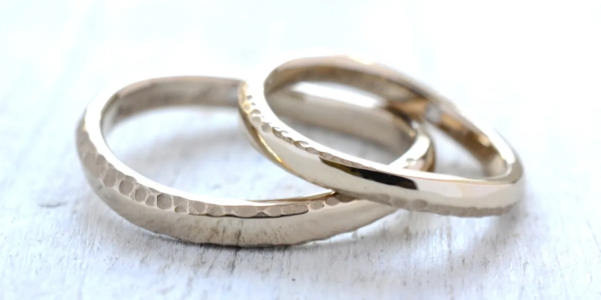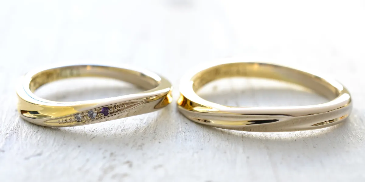 手作りの結婚指輪でも、ウェーブデザインは多くのお客様に選ばれています。曲線を出す作業は一見むずかしそうですが、職人のサポートを受けながら進められるので安心。完成したリングには「ふたりで一緒に曲線を描いた」という思い出も重なり、特別な輝きが宿ります。