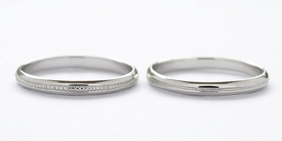 ミルグレインは、永遠や繁栄を意味する伝統的な装飾で、結婚指輪をより特別な存在にしてくれます。デザインのバリエーションも豊富で、粒の大きさや配置によって雰囲気を自由に変えられるのが魅力です。