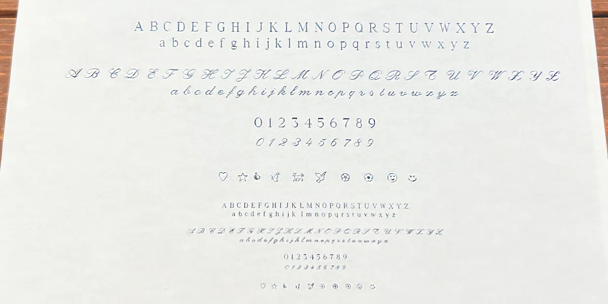 まるで手彫りのような自然な線を保ちながら、均一で美しい文字を刻むことができます。