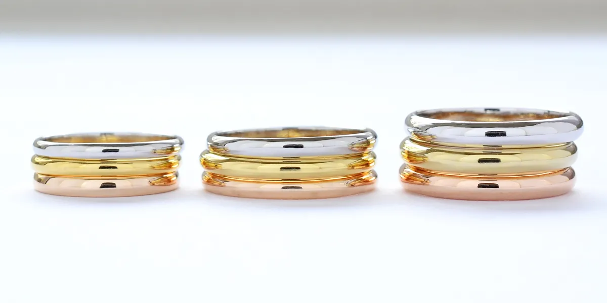 以上は例えですが、幅が倍になると強度の兼ね合いにより厚みも必要になります。細く華奢な指輪ほど金額は抑えられ、太くがっしりした指輪ほど高額になっていきます。