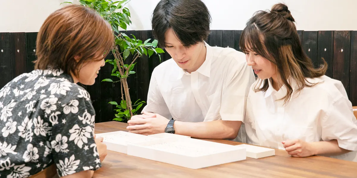 サンプルを見ながらご希望をお聞きし手作りする結婚指輪を決めていきます